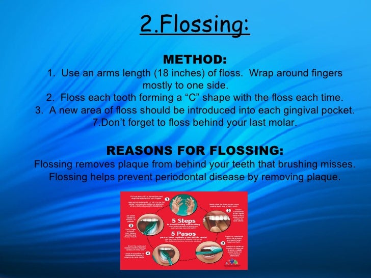 How do i floss? (Oscar Hampton) Big comes in as your patient. Flossing should be done with the "c shaped" method where the floss is inserted in-between the teeth and hugged to each tooth. Floss removes plaque and debris that adhere to teeth and gums in between teeth, polishes tooth surfaces, and controls There are two flossing methods: the spool method and the loop method..such as TestObservers but it is very hacky to test a hot flow (Within your test you need to launch a new scope where you start collecting the flow, before you are performing the method you're about to.