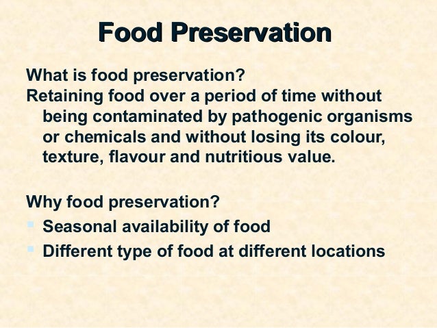 8 Methods Of Food Preservation. Food preservation is an action or method of designed to maintain foods at a desired level of quality. Food preservation, any of a number of methods by which food is kept from spoilage after harvest or slaughter.