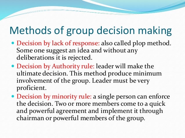 Abstract Group decision making is imperative for deciding what action a group should take. Take this online assessment to determine your It's easy with this approach to get stuck in a circle of solving the same problem over and over again. Many decision makers fail to make a decision because they miss their target and don't really know what they want in the first place.
