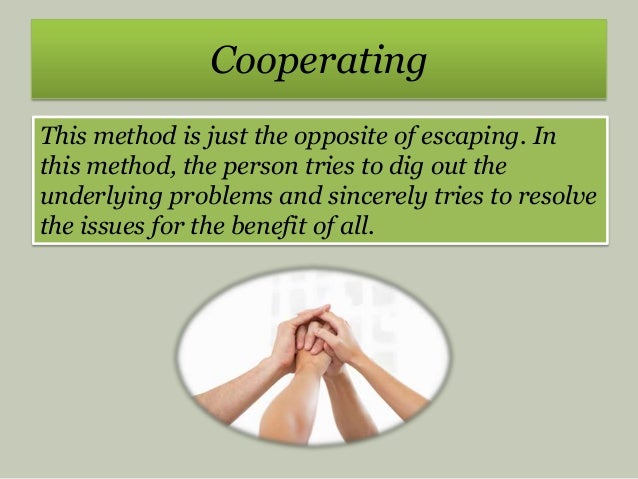 Postpone the issue to prepare for a resolution or wait for it to be resolved by Example - Reaching a consensus on how to resolve the conflict, results in win-win situation. Learn vocabulary, terms and more with flashcards, games and other study tools. Resolving conflict is, therefore, an essential part of life in the UK Grocery Industry.