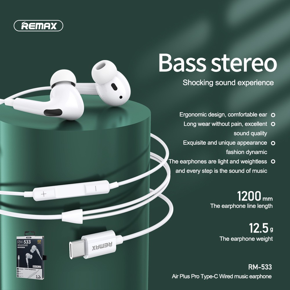 REMAX AirPlus Pro Type-C Earphone TPE Wired Earbuds RM-533 ...