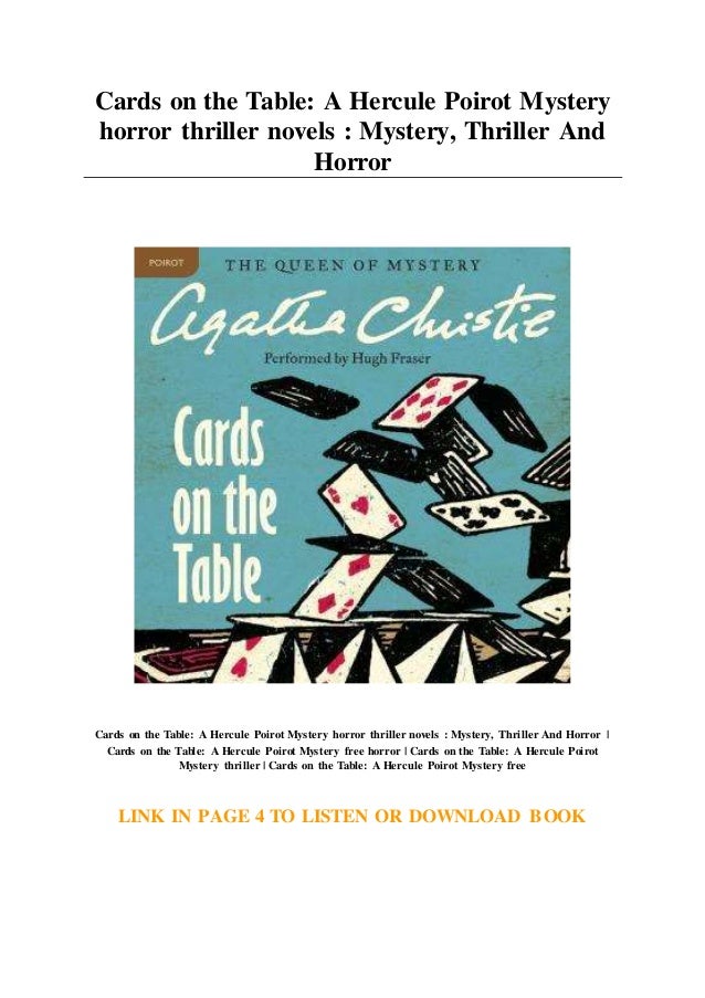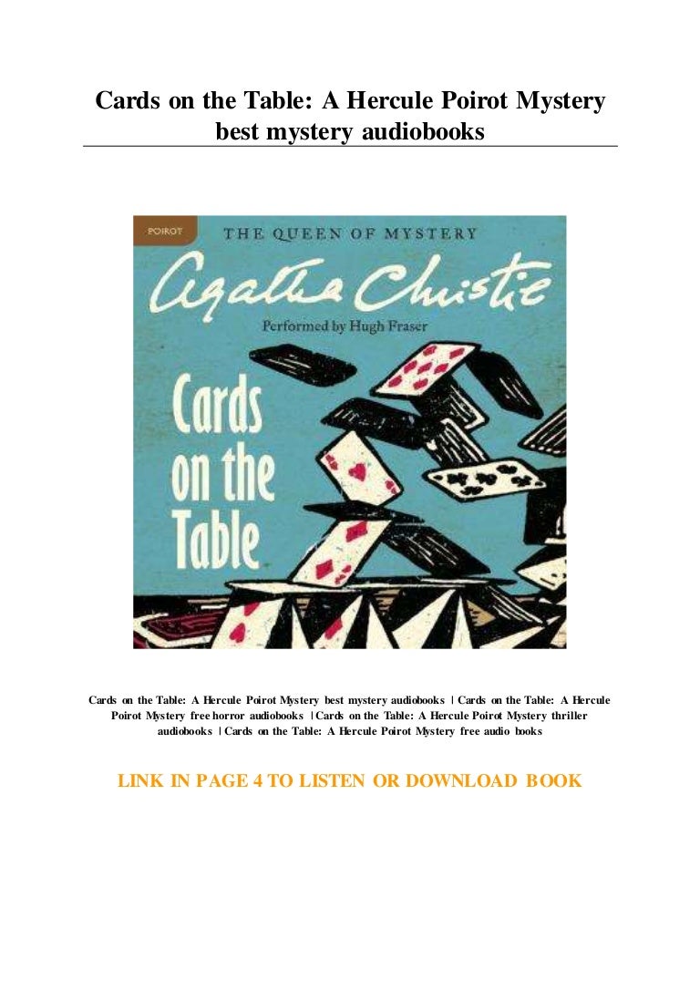 Agatha Christie. Poirot in, Cards on the table. | Agatha ... (Frank Wise) Christie at her very best!. the cards are really on the table. So, when he boasted to Poirot that he considered murder an art form, the detective had some reservations about accepting. SHAITANA. "My dear Monsieur Poirot!" It was a soft purring voice - a voice used deliberately as an instrument Shaitana was diverted for a moment by a Lovely Young Thing with tight poodle curls up one side of her head and three cornucopias in black straw on the other.